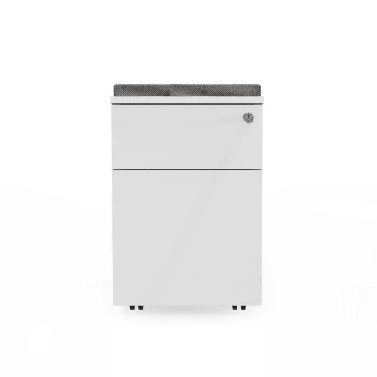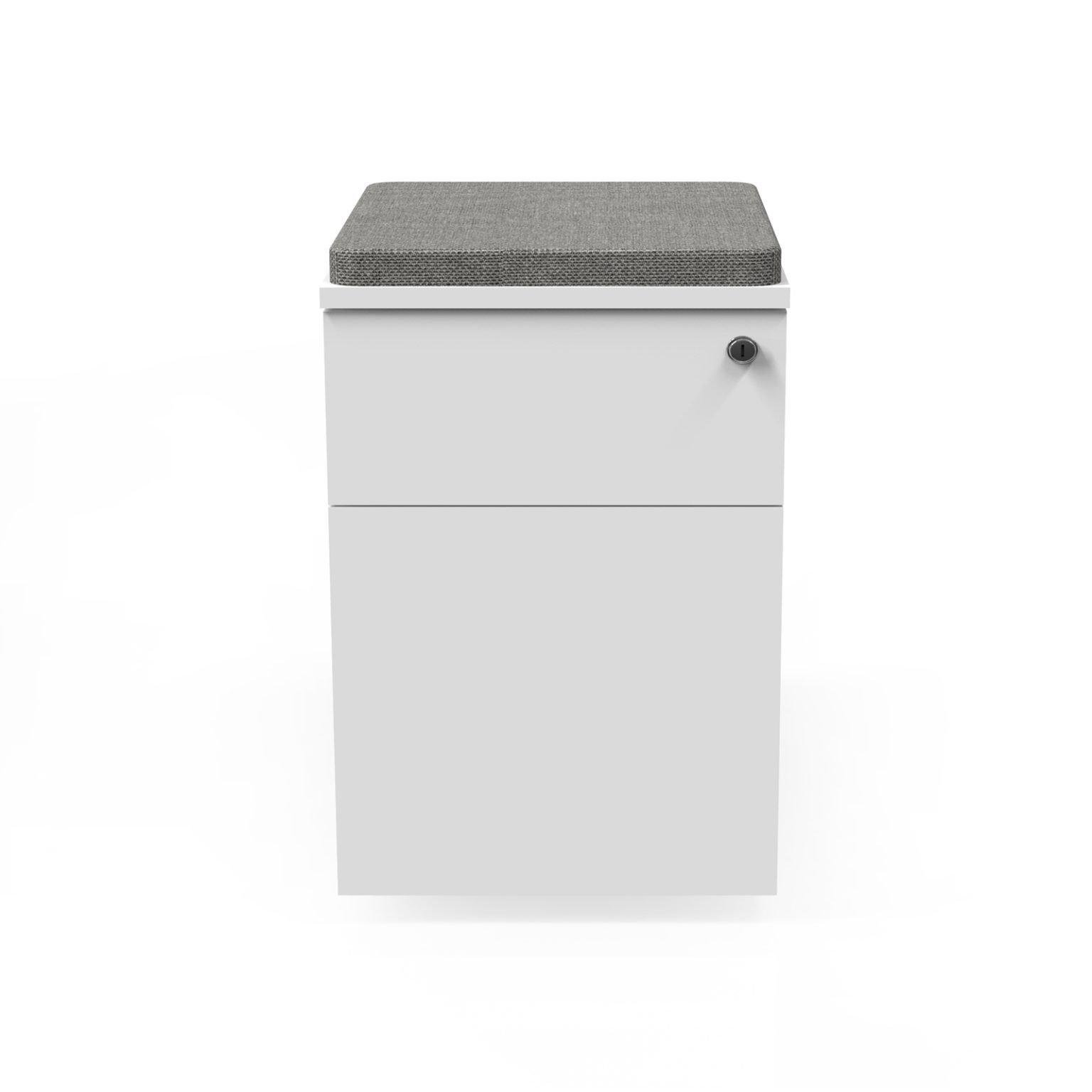 12109 | Mobile Pedestal : has 01 normal drawer & 01 file drawer with central lock,Top with cushion covered with fabric,Base with 4 castors.