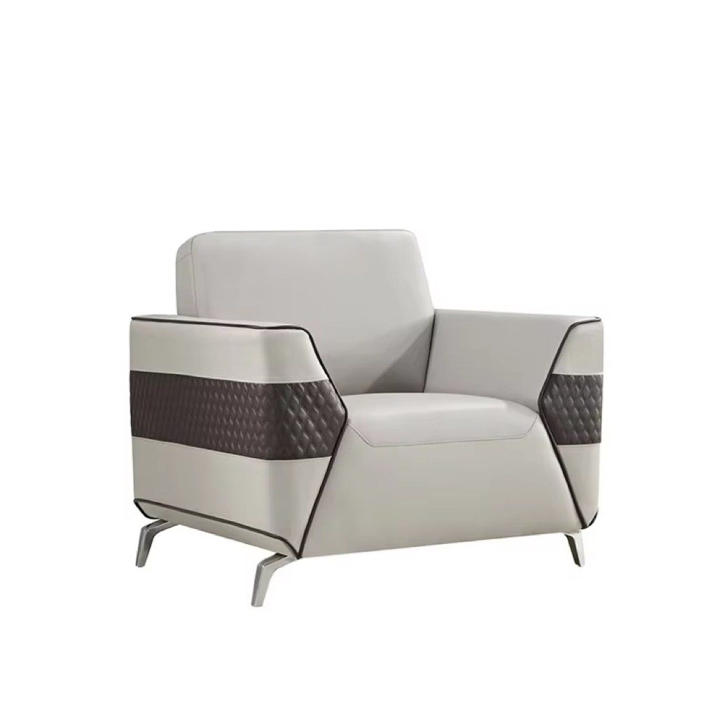 Moon model single sofa is made of beech wood upholstered in leather or fabric with nickel-plated iron legs.