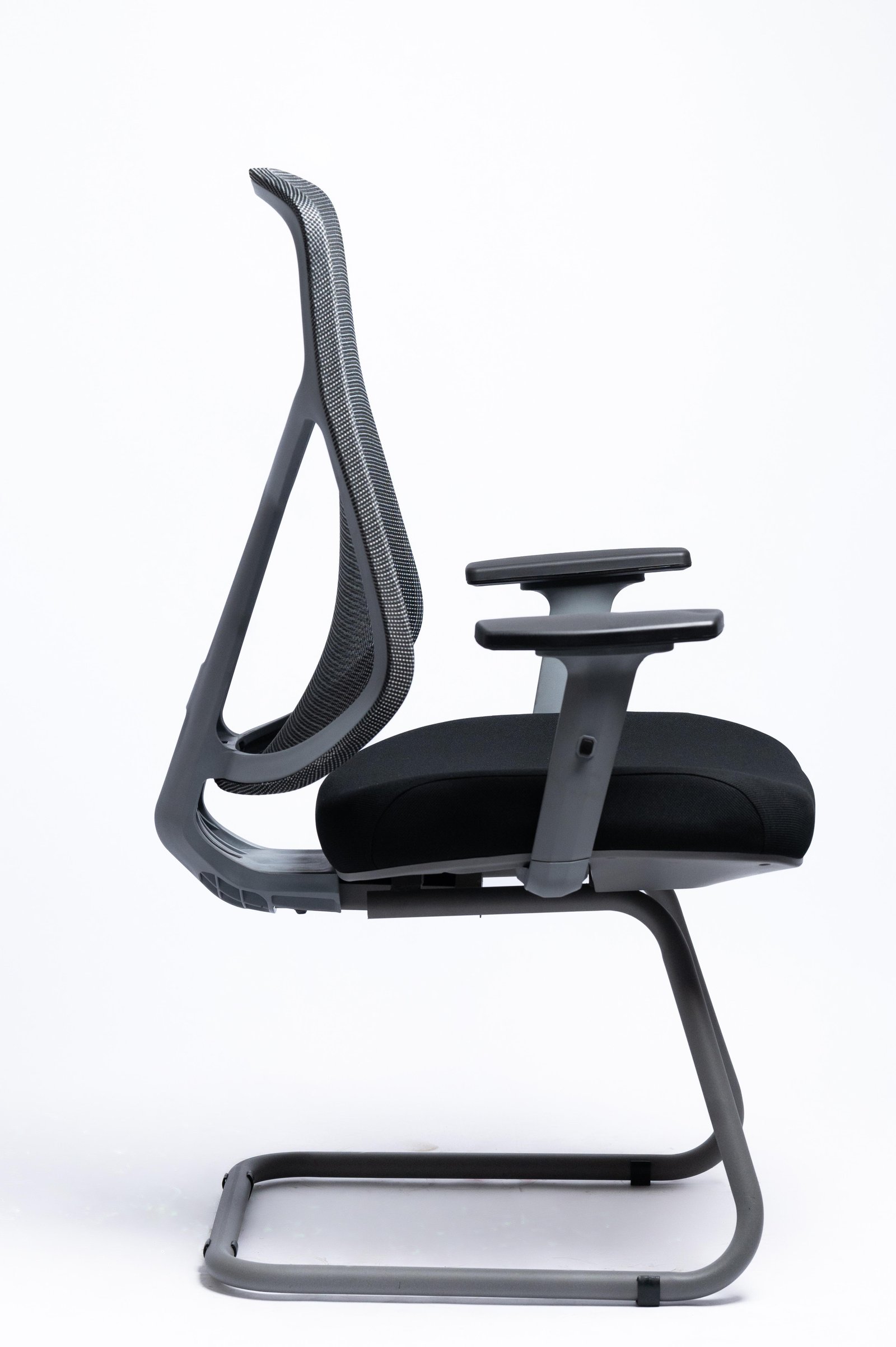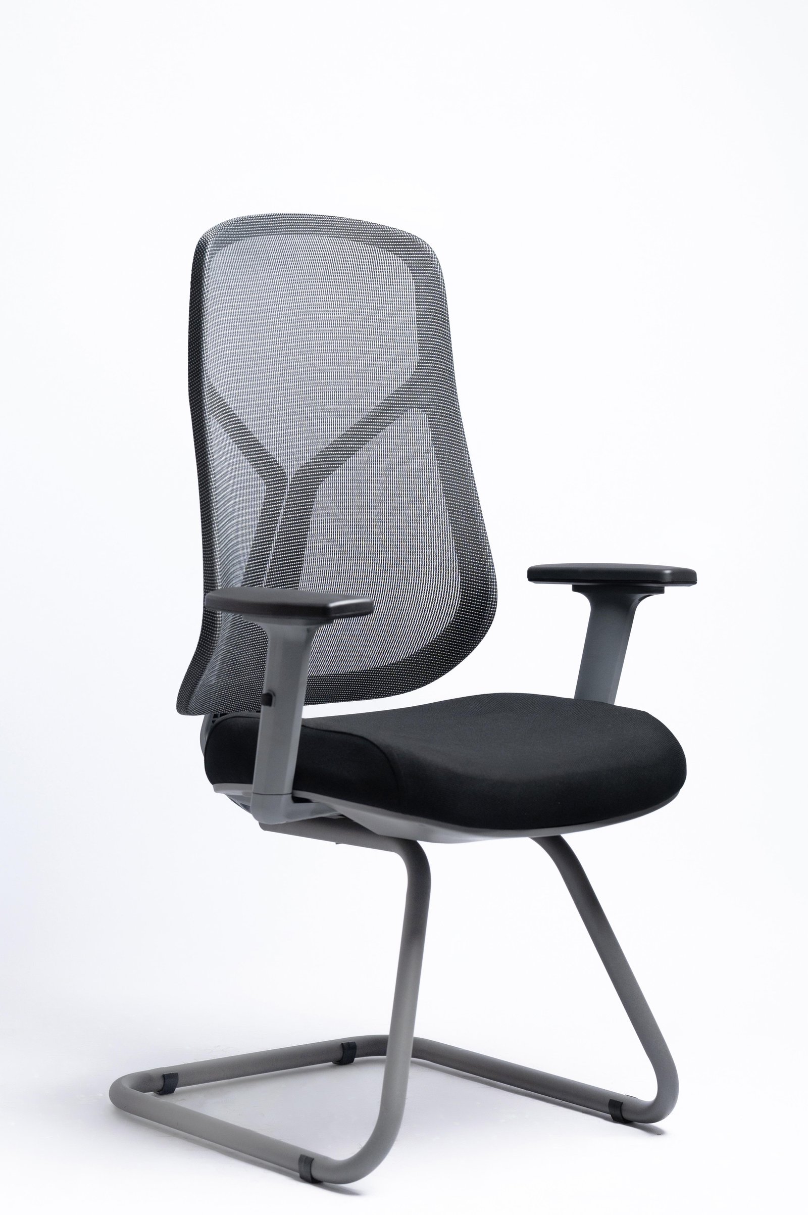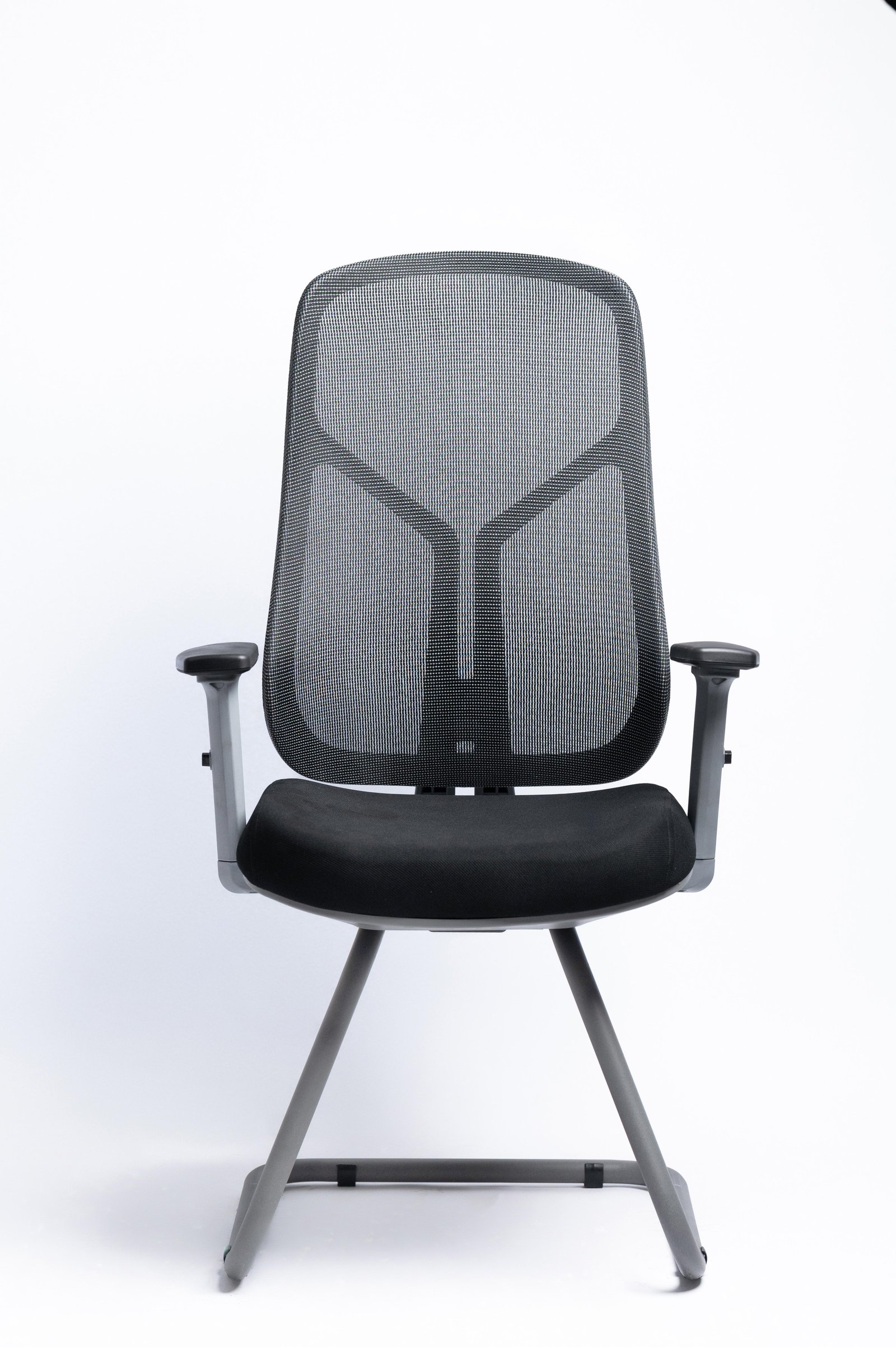 Visiting chair Gray color 2: Solid Nylon chair back with High abrasion Mesh, Back use high quality mesh 3: 2D amrrest 4: High density mould foam with fabric 5: 2.0mm Black painting visiting base