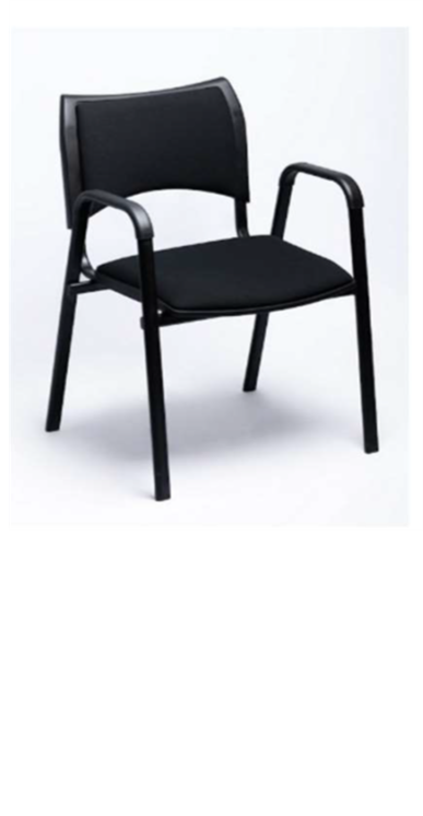 Visitor chair model new Royal metal black legs with black plastic seat and back upholstered fabric black with fixed armrest