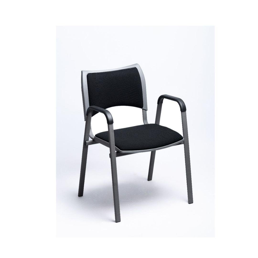 Visitor chair model new Royal metal gray legs with black plastic seat and back upholstered fabric black with fixed armrest