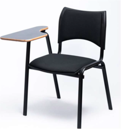 Training chair model new Royal with tablet made of wood with metal black legs with black plastic seat and back with upholstered fabric black