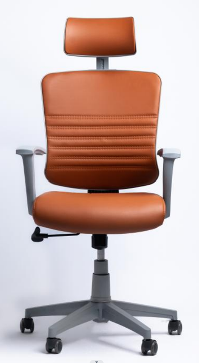 High back chair Gray color 1: Height adjsutable headrest with PU leather upholstered 2: back with the high quality PU leather upholstered 3: Fixed amrrest 4: seat for cutting foam, 5: Synchronized-tilt mechanism,Back-locking in 1 position,Height and tilt tension adjustable. 6:BIFMA standard ,Class 3 gaslift with 100mm distance. 7:plastic base and PU castor.