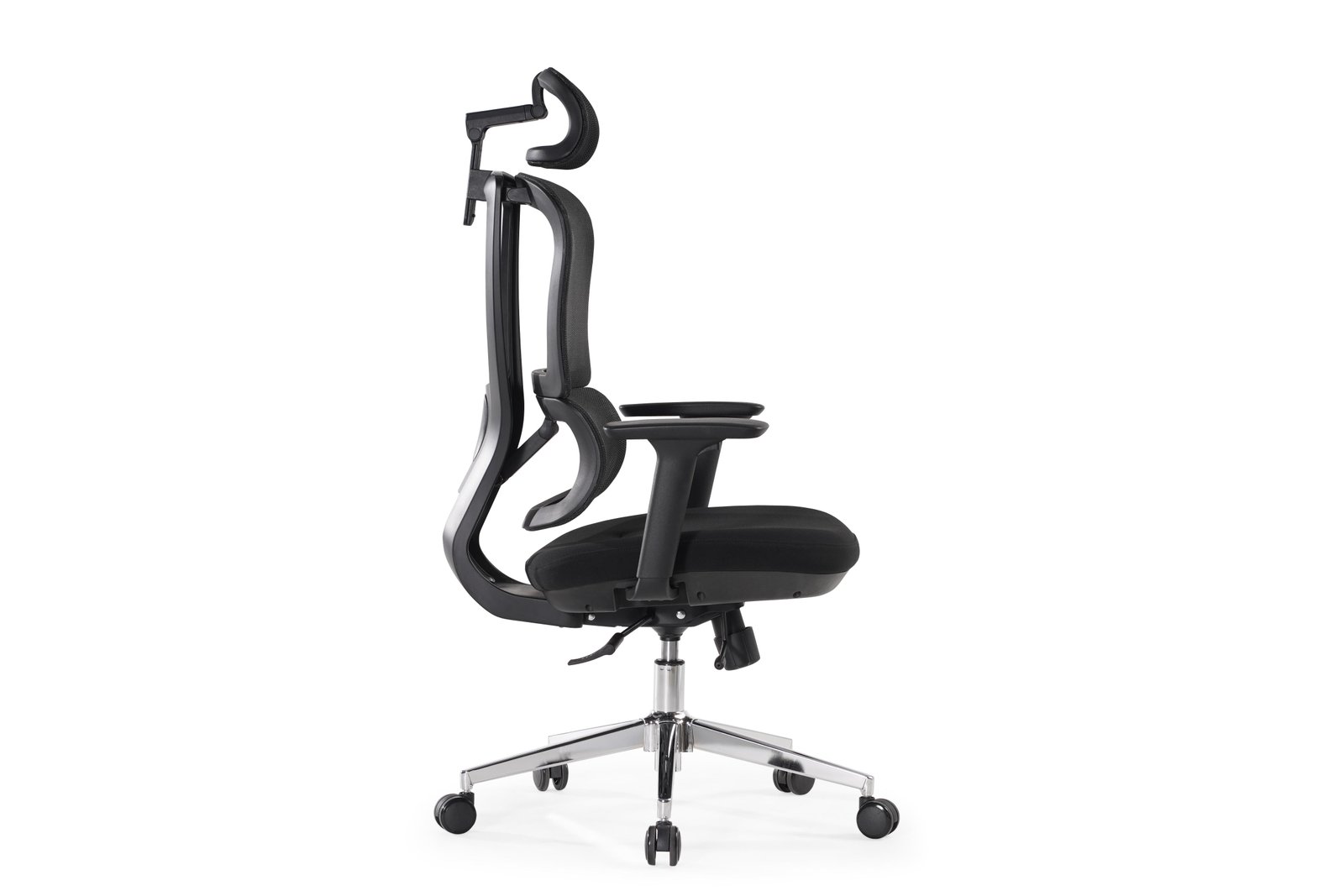 1.High back mesh BIFMA ergo chair, 2.4D headrest 3. Fixed backrest 4.backrest cushion can be 5 positions locked with 90mm range 5.3D armrest 6.mould seat foam with plastic cover 7.slide mechanism seat front and back 8.BIFMA 85mm chrome gaslift 9.350mm chrome base 10.60MM black BIFMA castors