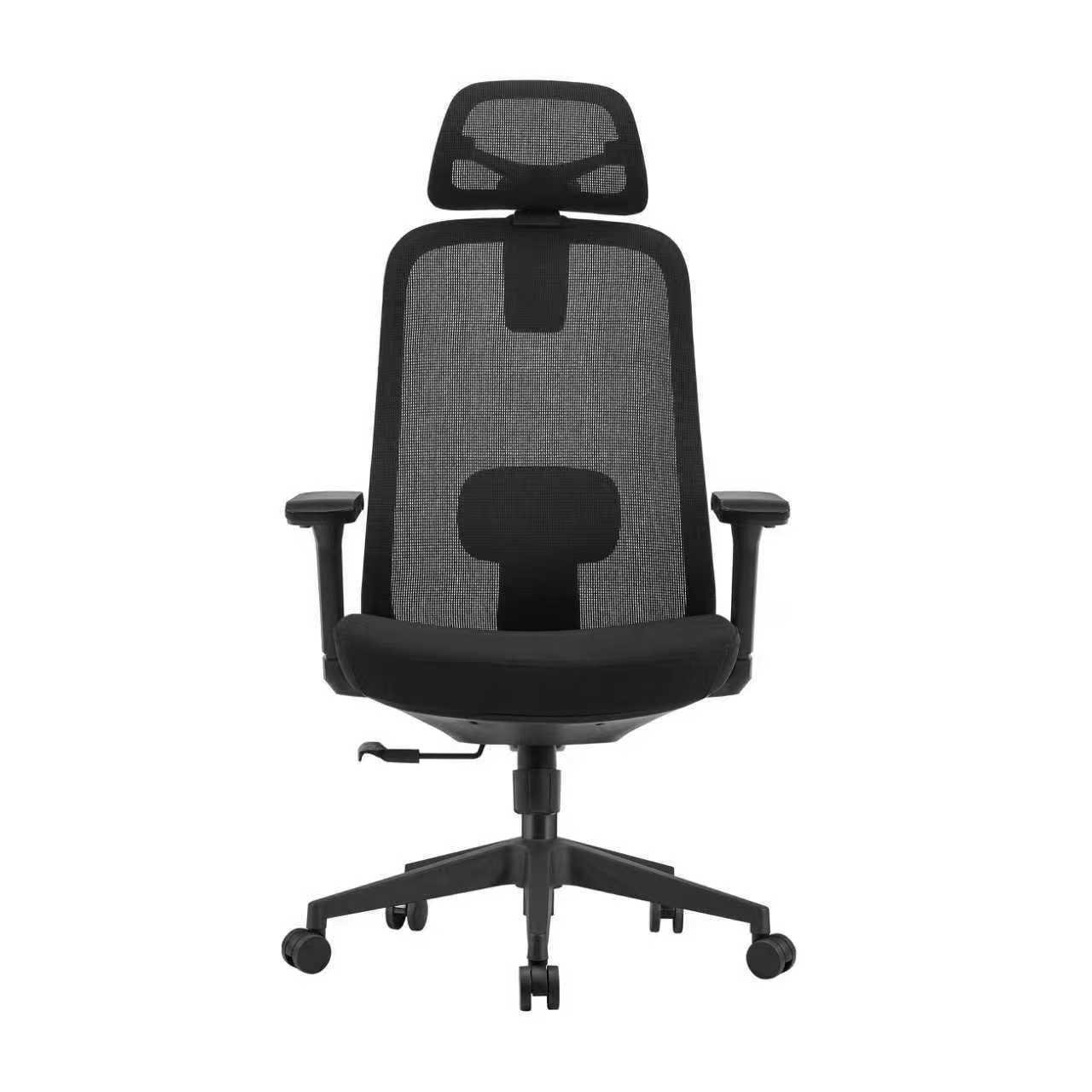 Adjustabel headrest Mesh back with adjustabel lumbar suport Fabri&molded foam seat with plastic cover Plastic 3D adjustable armrest with PU soft padded Three class locking mechanism R340mm chrome base with D60mm PU castors
