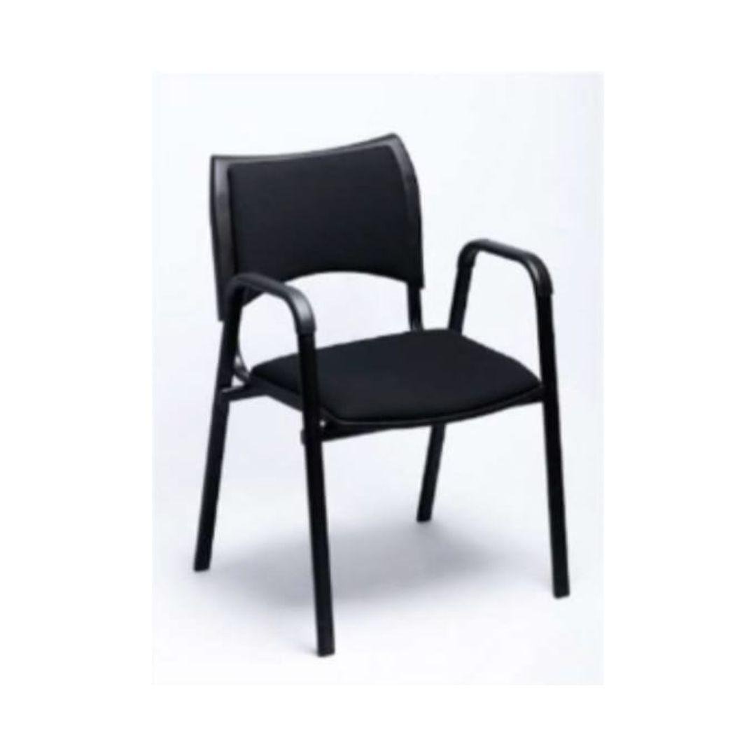 Visitor chair model new Royal metal black legs with black plastic seat and back upholstered fabric black with fixed armrest