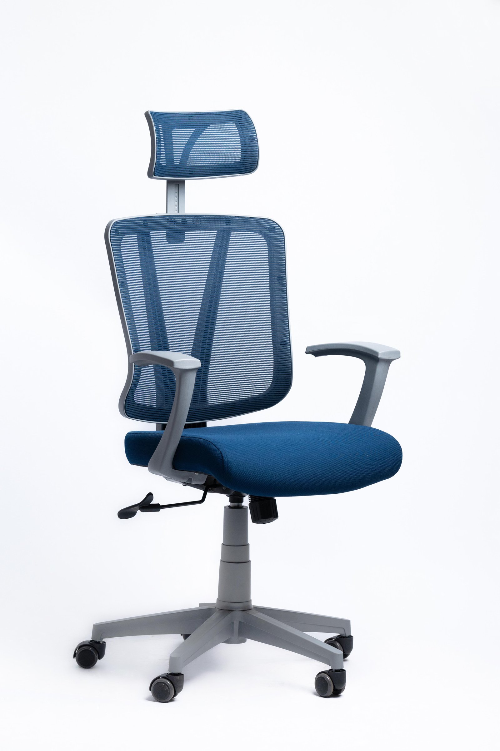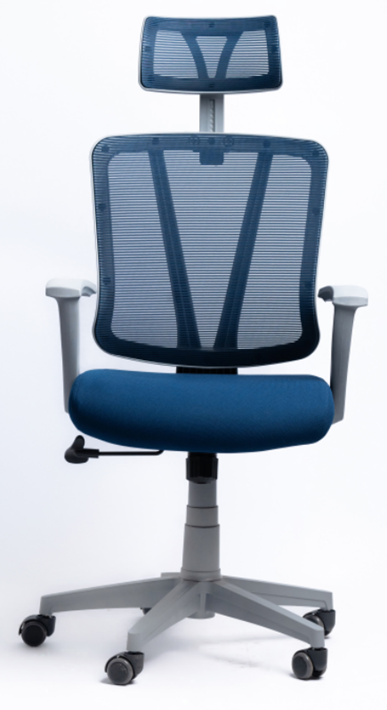 High back chair Gray color 1: Height adjsutable headrest with mesh 2: back with the high quality mesh 3: Fixed amrrest 4: seat for cutting foam, 5: Synchronized-tilt mechanism,Back-locking in 1 position,Height and tilt tension adjustable. 6:BIFMA standard ,Class 3 gaslift with 100mm distance. 7: 1000kgs Pressure standard 330mm size plastic base and PU castor.