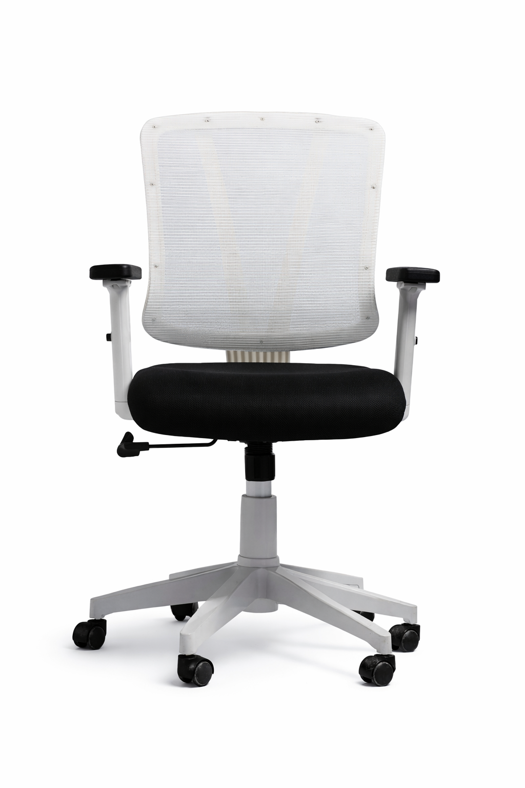 Middle back chair Gray color 1: Height adjsutable headrest with mesh 2: back with the high quality mesh 3: 2D amrrest 4: seat for cutting foam, 5: Synchronized-tilt mechanism,Back-locking in 1 position,Height and tilt tension adjustable. 6:BIFMA standard ,Class 3 gaslift with 100mm distance. 7:plastic base and PU castor.