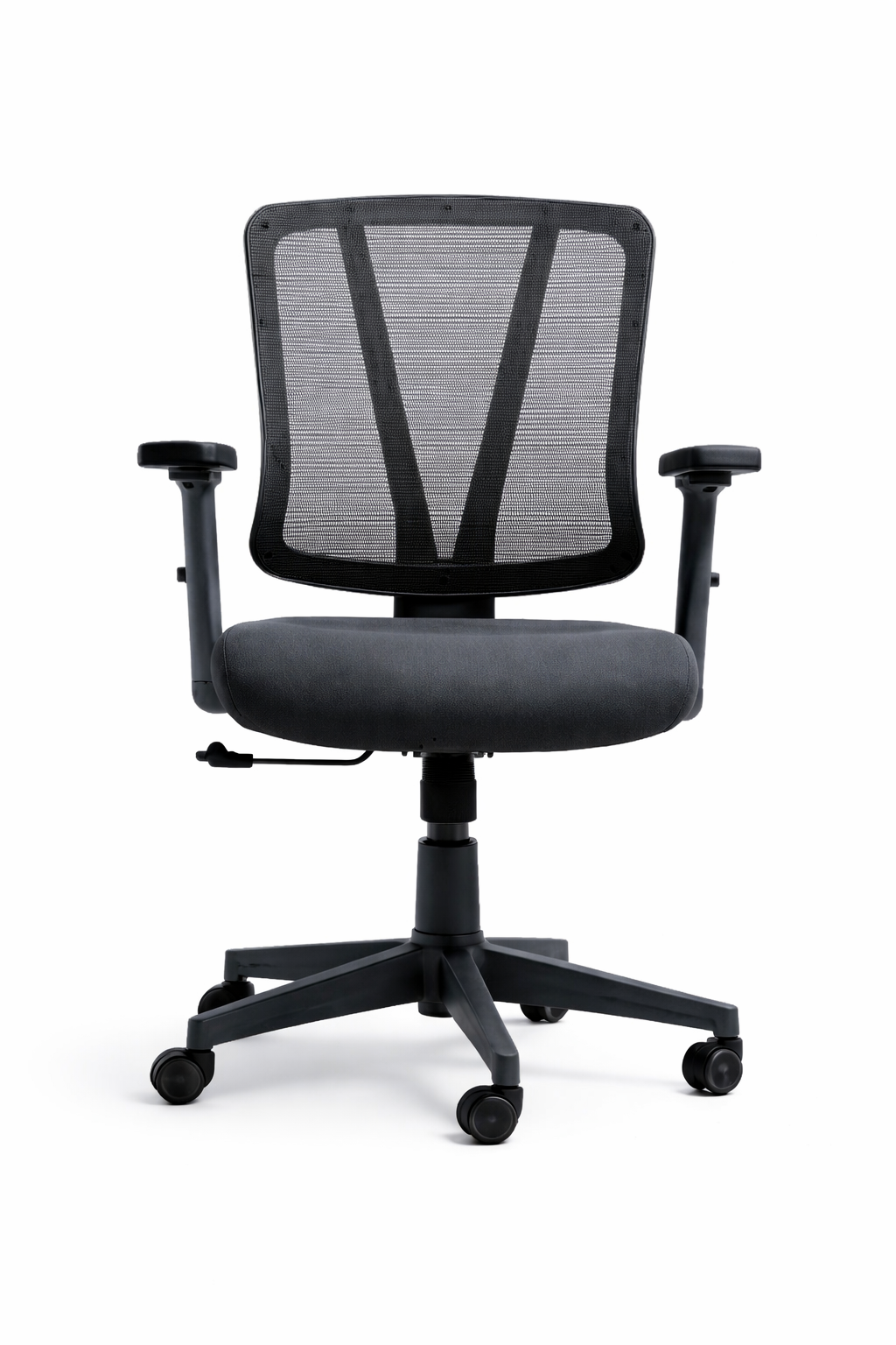 Middle back chair Gray color 1: Height adjsutable headrest with mesh 2: back with the high quality mesh 3: 2D amrrest 4: seat for cutting foam, 5: Synchronized-tilt mechanism,Back-locking in 1 position,Height and tilt tension adjustable. 6:BIFMA standard ,Class 3 gaslift with 100mm distance. 7:plastic base and PU castor.