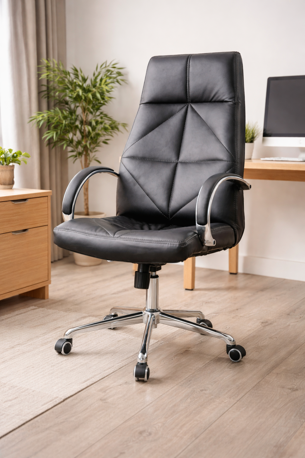 High back chair 1. Pu chair, 2. 1 arm mechanism 3.BIFMA gaslift 4.Chrome base 5.60MM castors
