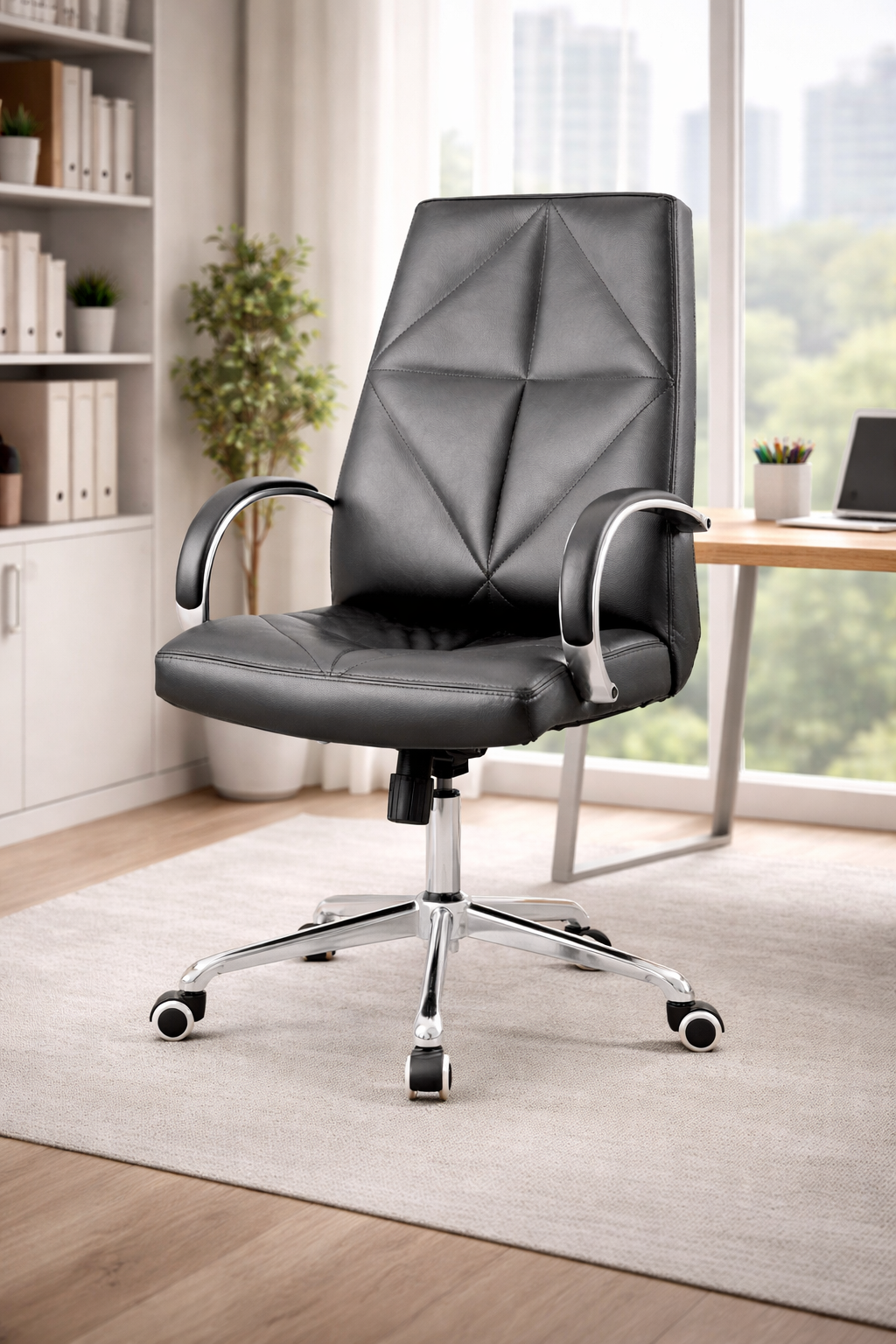 Middle back chair 1. Pu chair, 2. 1 arm mechanism 3.BIFMA gaslift 4.Chrome base 5.60MM castors