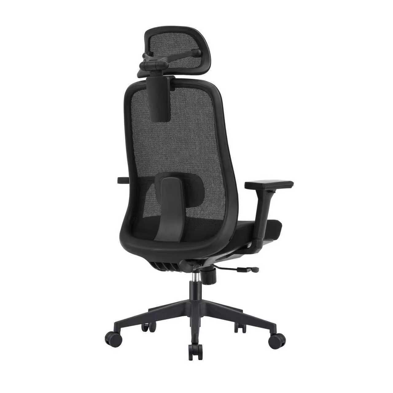 Adjustabel headrest Mesh back with adjustabel lumbar suport Fabri&molded foam seat with plastic cover Plastic 3D adjustable armrest with PU soft padded Three class locking mechanism R340mm chrome base with D60mm PU castors